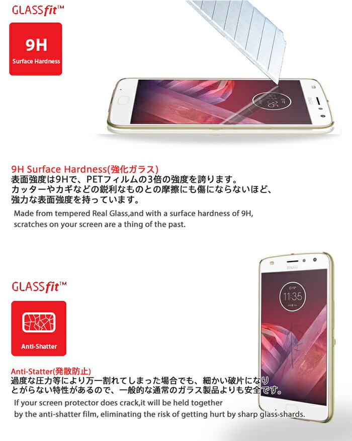 Moto Z2 Play ケース 9H 液晶保護 強化ガラスフィルム